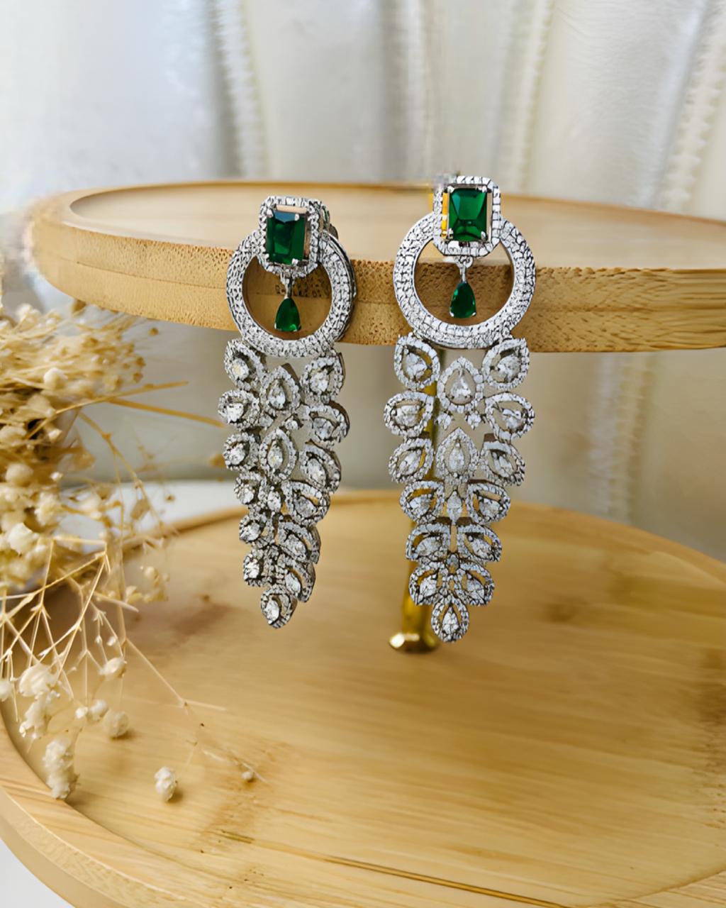 Long Emerald Diamond Earrings