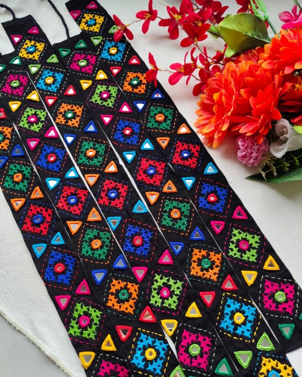 Expertly handcrafted for the celebration of Navratri, this belt is a must-have for any traditional ensemble. Made with care and attention to detail, it is the perfect accessory to elevate your festive look. Embrace the cultural significance and enhance your style with this handmade Navratri belt.
