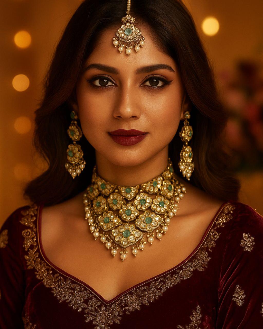 Introducing the Moissanite Polki Beauty, a stunning necklace set featuring traditional Polki craftsmanship and sparkling moissanite stones. This exquisite set will add a touch of elegance to any outfit. Made with high-quality materials, it is both beautiful and durable. Elevate your look with this timeless and sophisticated piece.